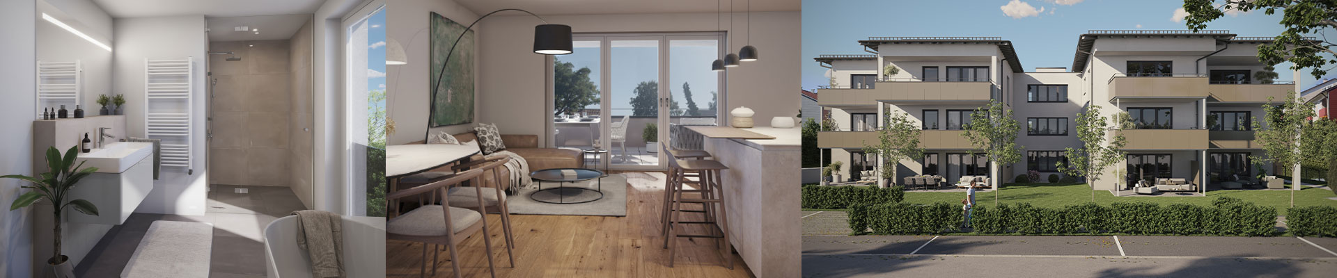 In Traunstein, zwischen Chiemsee und Alpen, entsteht ein modernes Wohnensemble mit 12 Eigentumswohnungen. Auf rund 1.541 m² verbindet das Projekt zeitgemäße Architektur mit hoher Bauqualität. Die Lage bietet urbanes Leben in Verbindung mit Natur und vielfältigen Freizeitmöglichkeiten. Zur Auswahl stehen 2- bis 4-Zimmer-Wohnungen in zwei Gebäudeflügeln mit drei Ebenen. Großzügige Grundrisse, weite Fensterflächen und sonnige Südterrassen oder Balkone schaffen ein offenes Wohngefühl. Erdgeschosswohnungen verfügen zusätzlich über private Gärten. Handwerklich hochwertige Bauweise und moderne Energiekonzepte sorgen für Nachhaltigkeit und niedrige Betriebskosten. So entsteht ein Zuhause, das Architektur, Wohnqualität und Naturnähe harmonisch vereint.