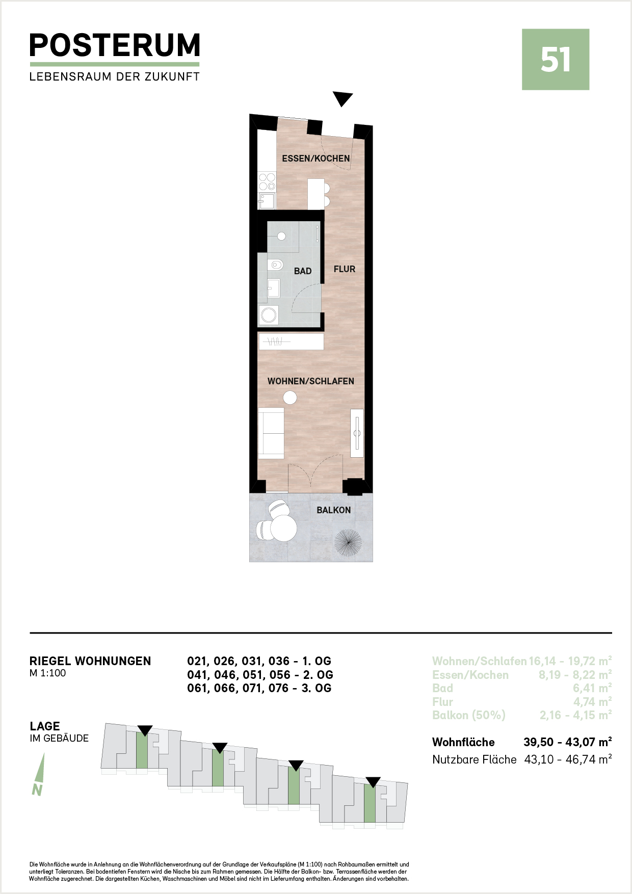 Diese kompakte, clever geschnittene Wohnung vereint Wohnen und Schlafen in einem modernen Raumkonzept. Der offene Wohn-/Schlafbereich führt direkt auf den Balkon und schafft ein angenehmes, helles Ambiente. Im vorderen Teil befindet sich der Ess- und Kochbereich, ideal für gemütliche Abende. Das moderne Badezimmer sowie ein funktionaler Flur ergänzen den Grundriss. Im POSTERUM entsteht zeitgemäßer Wohnraum mit hoher Qualität – ideal für Singles, Pendler oder Kapitalanleger, die Wert auf Komfort, Effizienz und ein durchdachtes Wohngefühl legen.