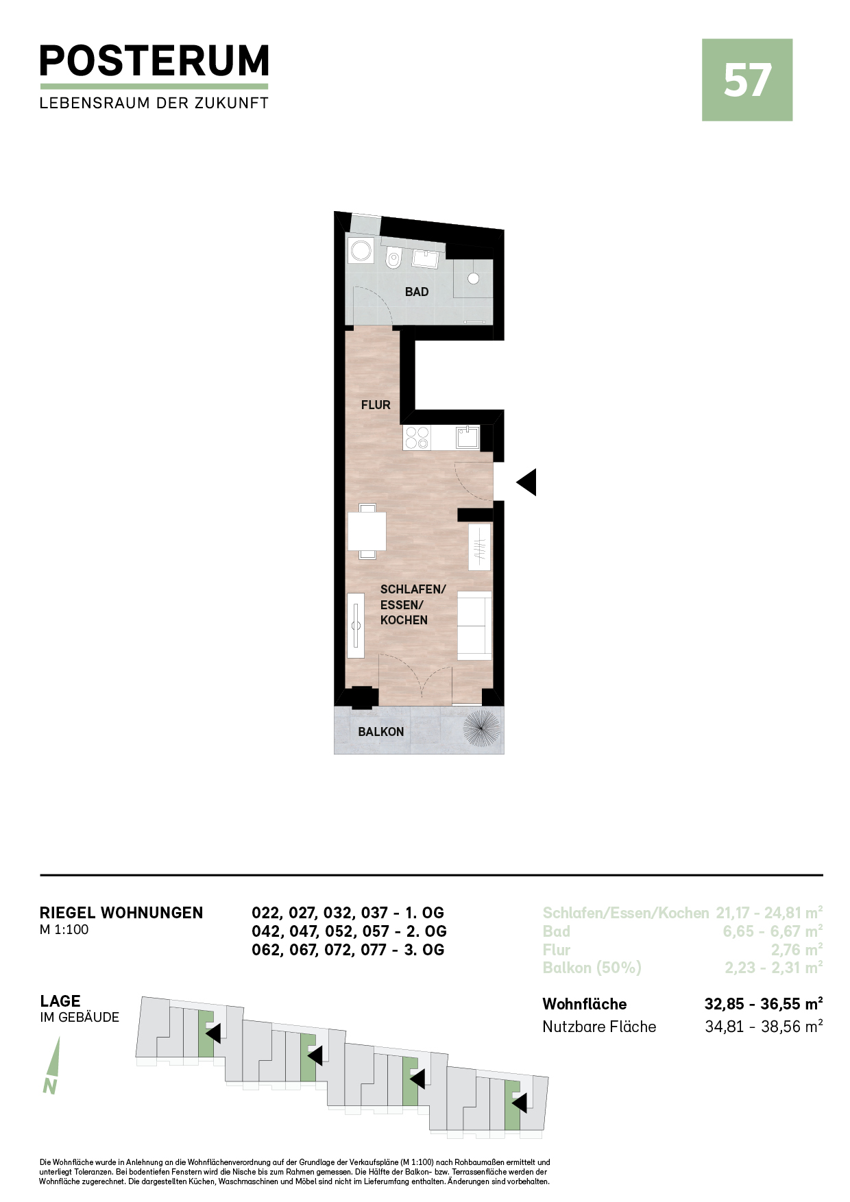1-Zimmer-Apartment mit BalkonWHG 57 (Riegel 4) – Chiemseestraße 25, TraunsteinKAUFEN