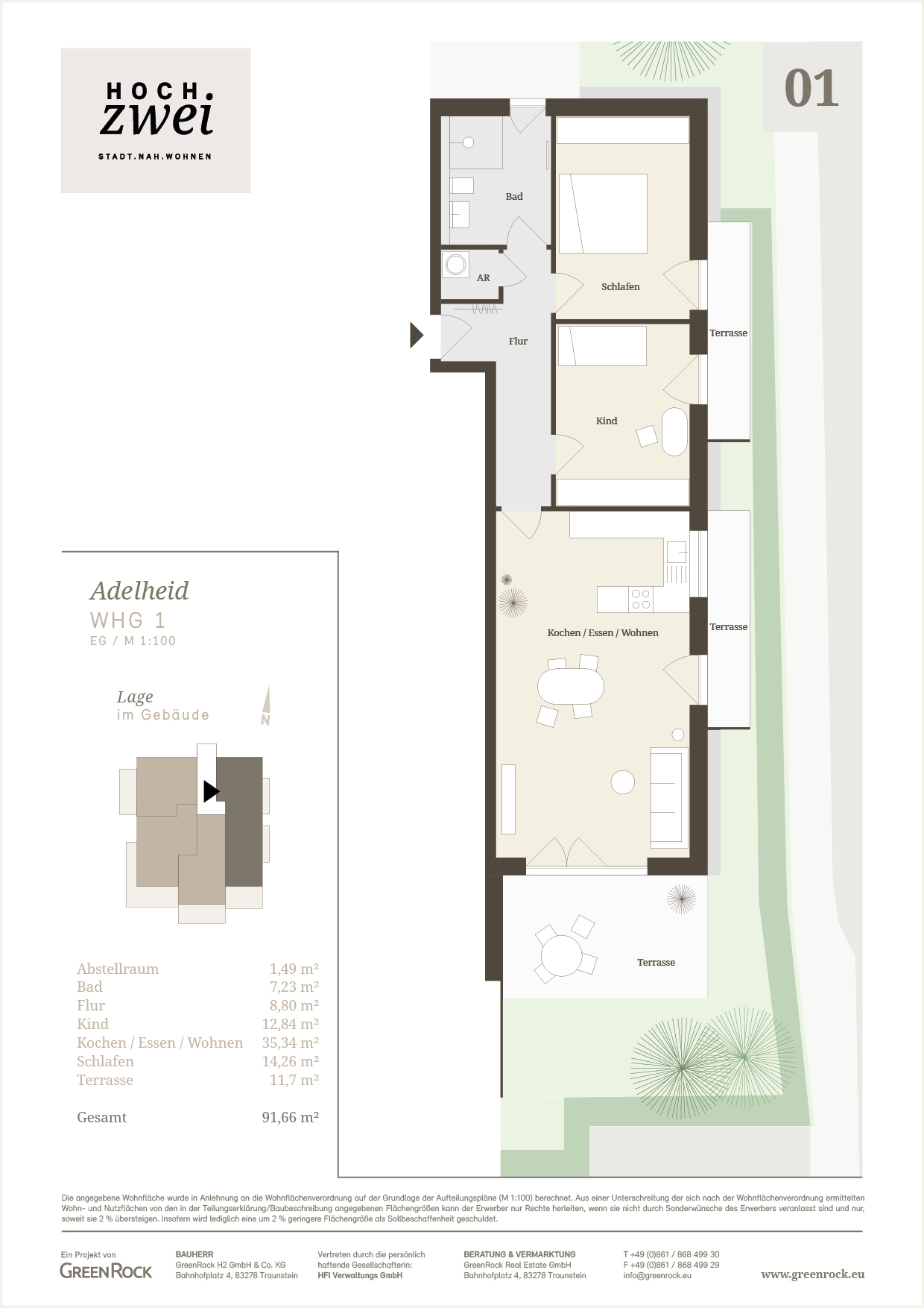 3-Zimmer-Wohnung mit TerrasseWHG 01 – Hochfellnstraße 2, TraunsteinKAUFEN